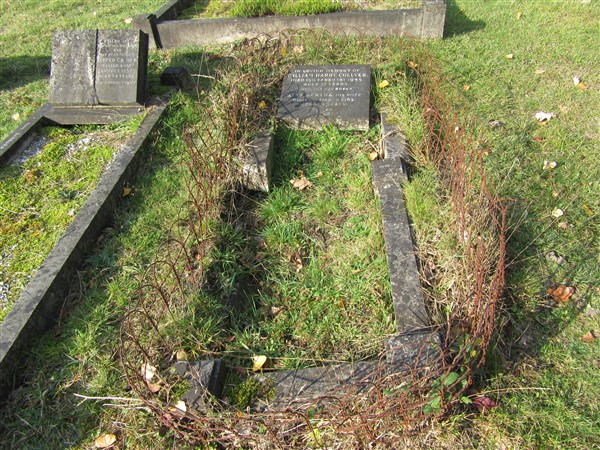 Headstone reads "In Loving Memory of William Harry Collyer died 15th February 1945 aged 57 years Until the day break