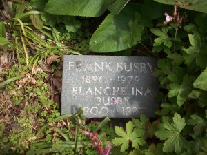 Headstone states "Frank Busby 1890-1979 Blanche Ena Busby 1900-1987"
