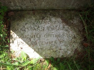 Headstone reads "In memory of Mary Ann CHERRYMAN, daughter of the above died November 8th 1974" see John Faggetter and Albert James Cherryman