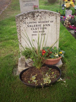 Headstone reads "In loving memory of Valerie Ann Clutton nee Reid 1950 - 2005"