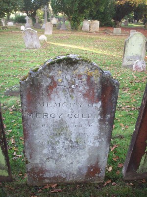 Headstone reads "In memory of Mercy COLLINS who departed this life April 19th 1870 aged 82 years"