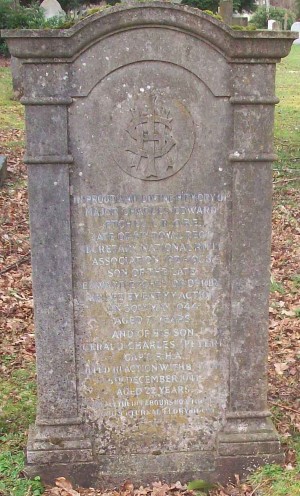 Headstone reads "In proud and loving memory of Major Charles Edward Etches C.B. O.B.E. late of 6th Royal Regt, Secretary National Rifle Association 1921 - 1938 son of the late Edward ETCHES of Derby. Killed by enemy action 30 May 1944 aged 71 years. And of his son Gerald Charles (Peter) ETCHES Capt R.H.A. Killed in action with 8th Army 5 Dec 1941 aged 22 years "