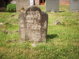 Headstone reads "Baby GERRET love you always Mummy and Daddy"