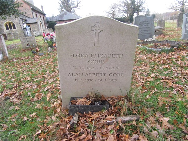 Headstone reads "Flora Elizabeth Gore 22.12.1929 - 13.9.2010 Alan Albert Gore 15.5.1930 - 24.2.2015 "