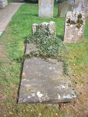 This headstone now partly illegible was transcribed in 1975 as "In memory of James GOSDEN who departed this life March 1st 1864 aged 72 years"