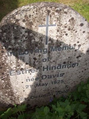 Headstone reads "In loving memory of Esther HINDMAN nee DAVIS 21 May 1925 - 24 Oct 2000"