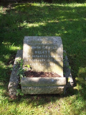 Headstone reads "In loving memory of my dear husband Edwin Groves Hulett who departed this life on February 13th 1906 aged 64 years"