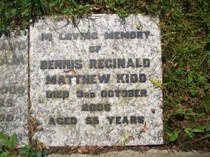 Headstone reads "In loving of Dennis Reginald Matthew Kidd died 3rd October 2006 aged 55 years"