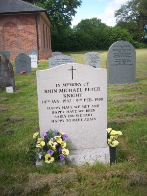 Headstone reads "In Memory of John Michael Peter KNIGHT14th Jan 1942 - 9th Feb 1988 Happy have we met and happy have we been, sadly did we part happy to meet again."