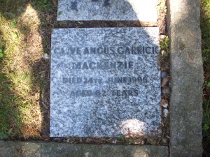 Headstone reads "Clive Angus Garrick MacKenzie died 24th June 1995 aged 62 years"