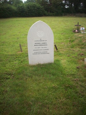 Headstone reads "In loving memory of Roger James Marjoribanks 17.5.1933 - 28.2.2013 Advance with courage A devoted husband, father and grandfather"
