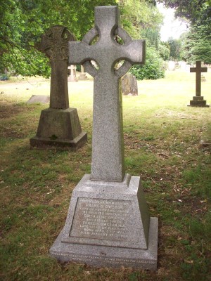 Headstone reads "To the dear memory of Francis Owston. Late of Yokohama Japan. The beloved husband of Edith Flint Owston and eldest son of Francis Owston M. A. late Vicar of Pirbright. Born April 27th 1851 Died January 27th 1927. Our sister Margery Marianne Kilby 1887 - 1949"