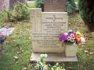 Headstone reads "In loving memory of a dear husband and father James William Pammenter died 7th August 1970 aged 75 years More dear to me than life also in loving memory of his wife Ellen Victoria Pammenter who died 7th Nov 1972 aged 75 years "God bless you both""
