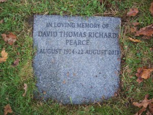 Headstone reads "In loving memory of David Thomas Richard Pearce 3 August 1934 - 22 August 2011"