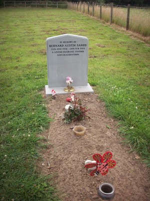 Headstone reads "In memory of Bernard Austen Sands 25th Aug 1938 - 20th Feb 2014 A loving husband, father and grandfather"