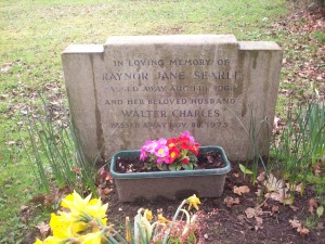 Headstone reads "In loving memory of Raynor Jane Searle passed away Aug 14th 1964 and her beloved husband Walter Charles passed away Nov 8th 1975"