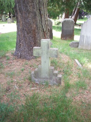 Headstone reads "In affectionate remembrance of John Peter SHERMAN died Feb 7th 1875 aged 15 years. Also of George Henry SHERMAN interred in Shere churchyard born March 8th 1870 died July 23rd 1871."