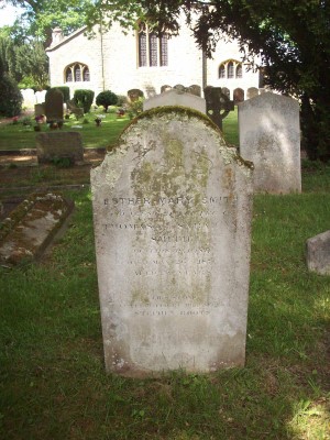 Headstone reads "In memory of Esther Mary SMITH youngest daughter of Thomas & Sarah Ann SMITH of this Parish died May 26th 1876 aged 59 years. This stone was erected by her nephew Stephen ROOTS"
