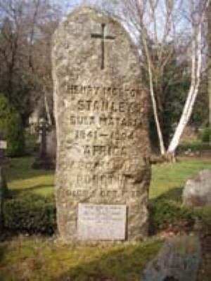 Headstone reads "Henry Morton Stanley, Bula Mutari, 1841-1904, Africa and his wife Dorothy died 5 Oct 1926"