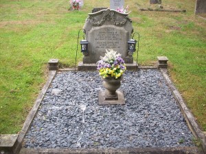 Headstone reads "In loving memory of Alan Stevens who passed away 10th March 1936 aged 76 Also his loving wife Annie Laura 29th May 1937 aged 68 Reunited"