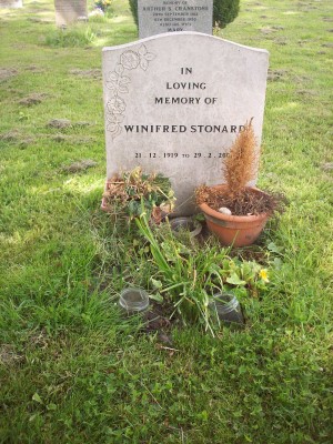 Headstone reads "In Loving Memory of Winifred STONARD 21.12.1919 - 29.2.2004"