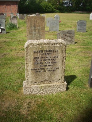 Headstone reads "Ellen Isabelle STREET died Jan 15th 1976 aged 89 years. Brian Arthur DOWLING died April 20th 2004 aged 87 years"