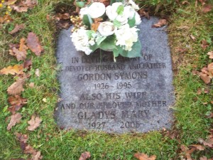 Headstone reads "In loving memory of a devoted husband and father Gordon Symons 1926 - 1995 also his wife and our beloved mother Gladys Mary 1927 - 2005"