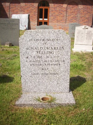 Headstone reads "In loving memory of Ronald Charles TELLING 7.7.1917 - 14.4.1996. A dearly loved father & grandfather. RIP Forever in our thoughts"