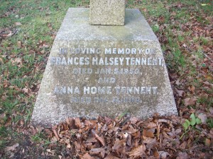 Headstone reads "In loving memory of Frances Halsey Tennent died Jan 5 1959 and Anna Home Tennent died Dec 31 1960"