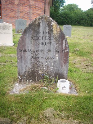 Headstone reads "Peter Geoffrey THRIFT 30th May 1945 -9th July 1995