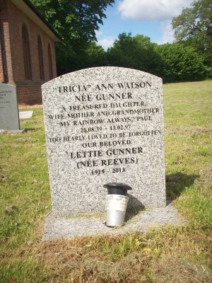 "My rainbow always" Paul 25.08.39 - 13.02. 97. Too dearly loved to be forgotten our beloved Lettie Gunner (nee Reeves) 1919-2013"
