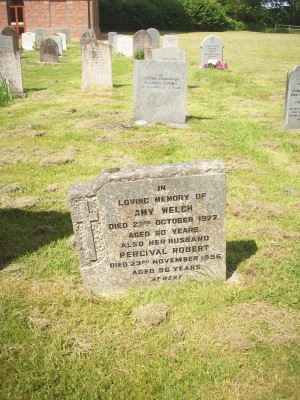 Headstone reads "In Loving Memory of Amy WELCH died 23rd October 1977 aged 80 years. Also her husband Percival Robert died 23rd November 1996 aged 96 years. At rest"