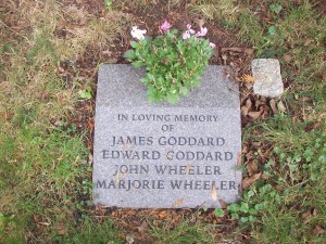 Headstone reads "In loving memory of James Goddard Edward Goddard John Wheeler Marjorie Wheeler"