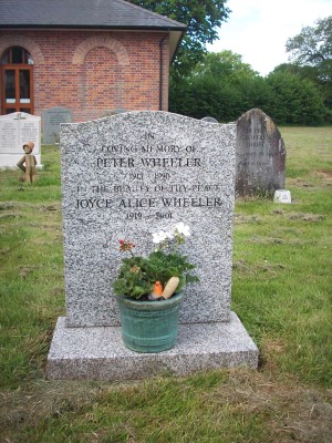 Headstone reads "In Loving Memory of Peter WHEELER 1913 - 1990. In the beauty of thy peace. Joyce Alice WHEELER 1919 - 2001"