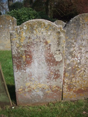 Headstone reads "In memory of William WOODS who died September 26th 1812 aged 72 years rest illegible"